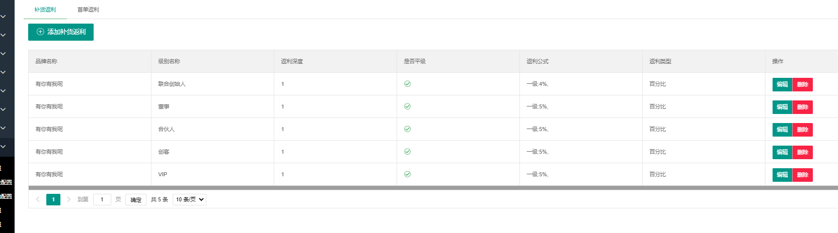 点击【返利配置】,配置补货返利及首单返利。