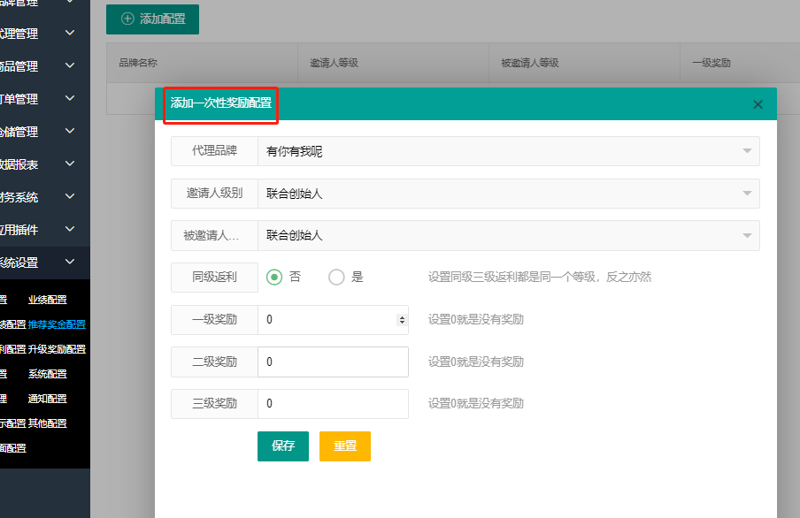 系统配置 - 推荐奖金配置