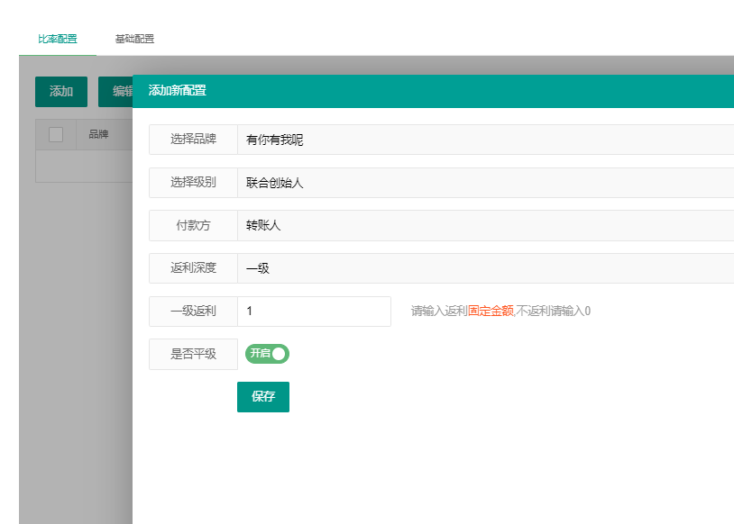 系统配置 - 充值返利配置