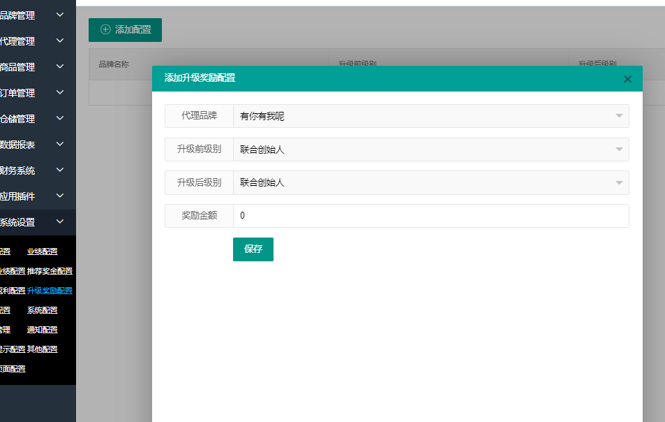 点击【升级奖励配置】,开始配置。