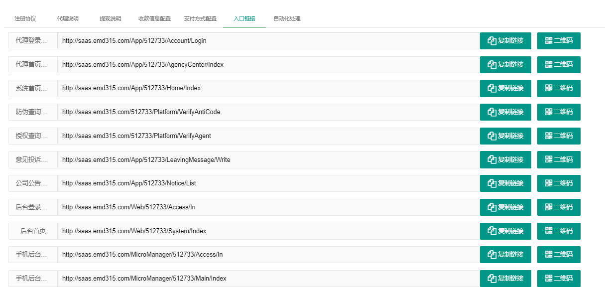 点击【入口链接】,查看各个入口链接