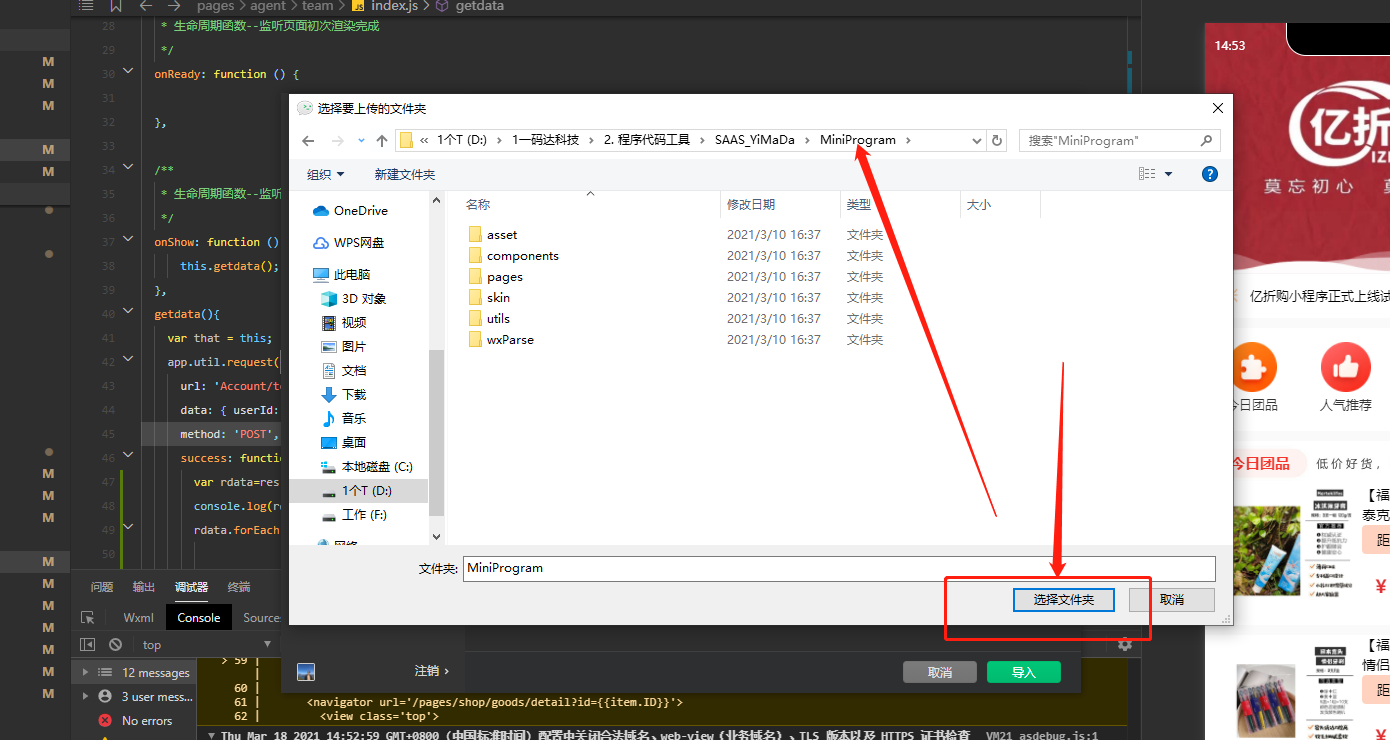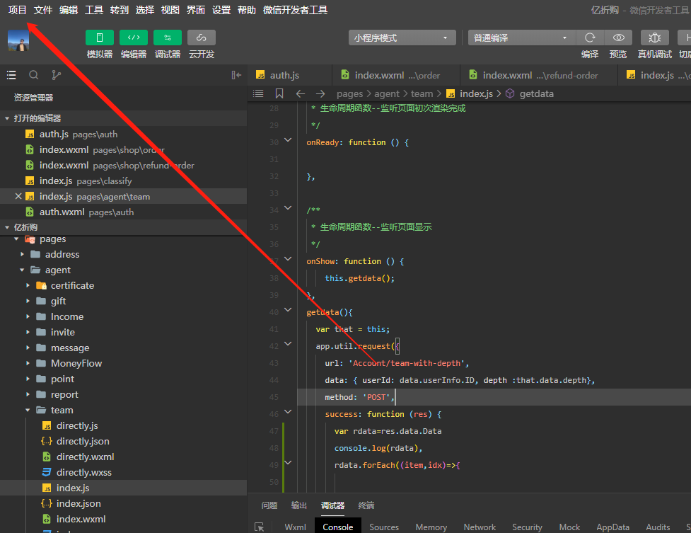 - 打开小程序开发者工具,打开一个现有项目,点击右上角、项目、导入项目