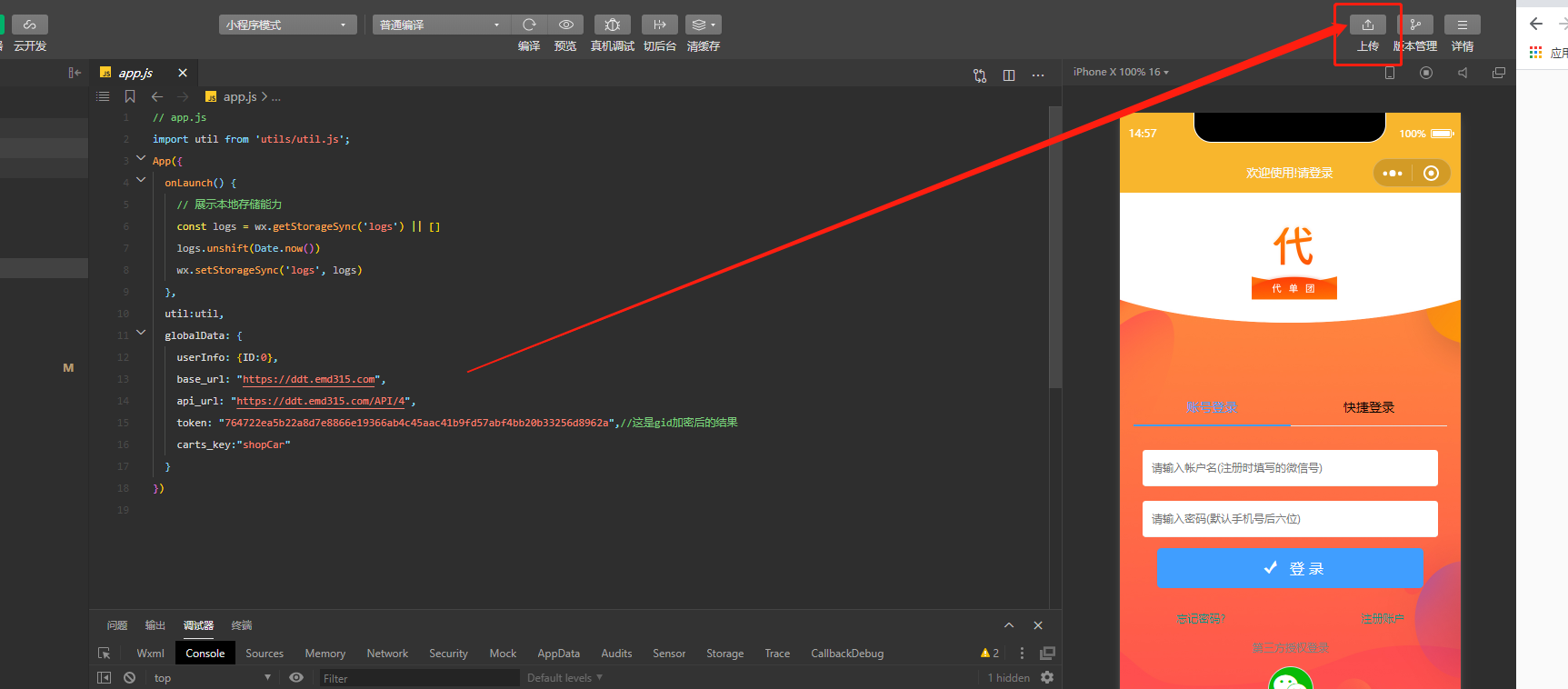 三行数据分别为 域名:https://ws.xxxx.com,接口域名:https://ws.xxx.com/API/ + 登陆地址中间那串数字 修改pages/index/index.wxml里面的域名地址为客户的系统的地址