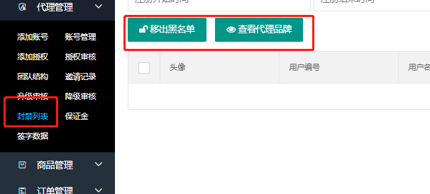 点击【封禁列表】,查询违规代理名单。