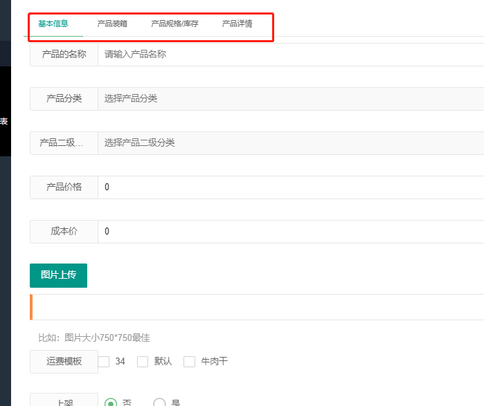 点击【添加商品】,根据提示输入基本信息、产品装箱、产品规格、产品详情,然后保存。