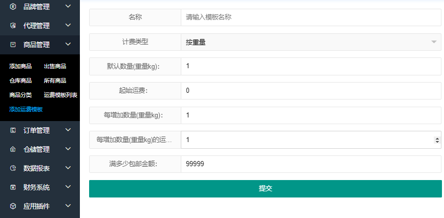 商品管理 - 新增运费模板