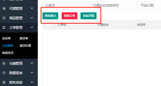 点击【云仓换货】,对换货申请进行通过、拒绝操作。