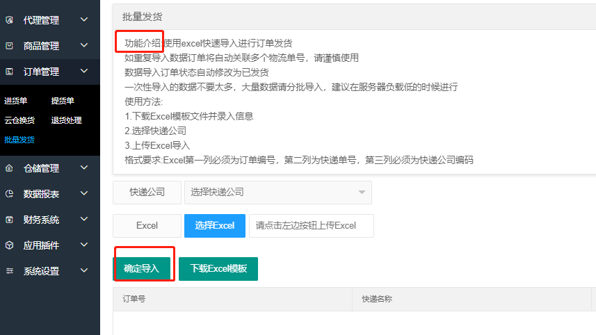 订单管理 - 批量发货