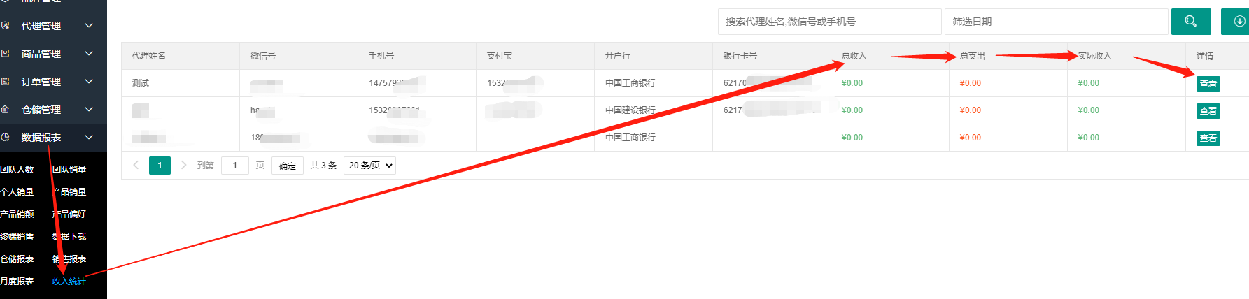 点击【收入统计】,查看总收入、总支出、实际收入。