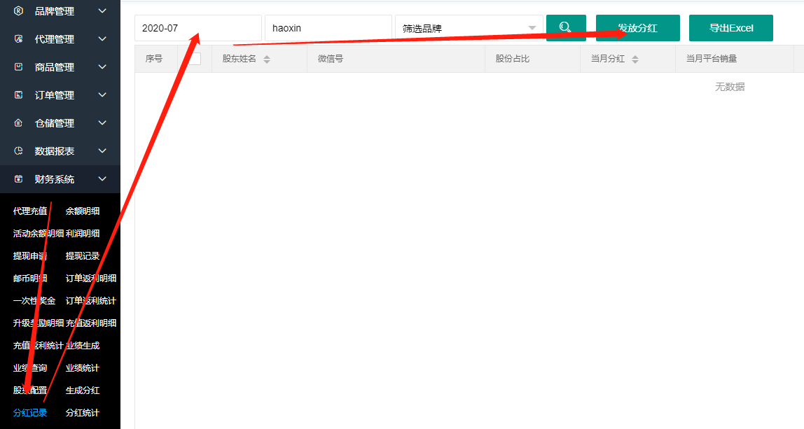 然后点击发放分红