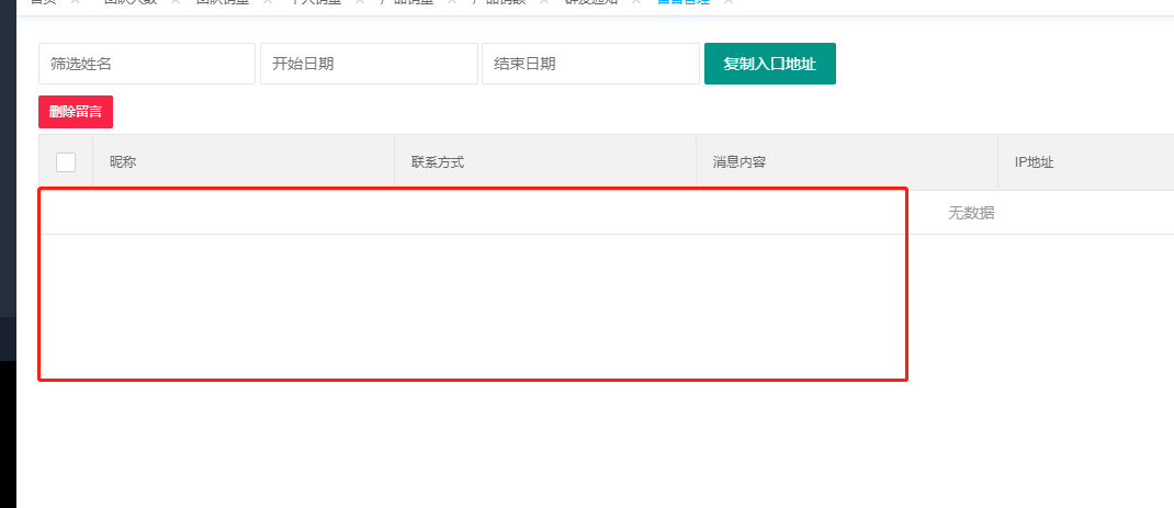 留言内容显示在此处,可进行删除管理。