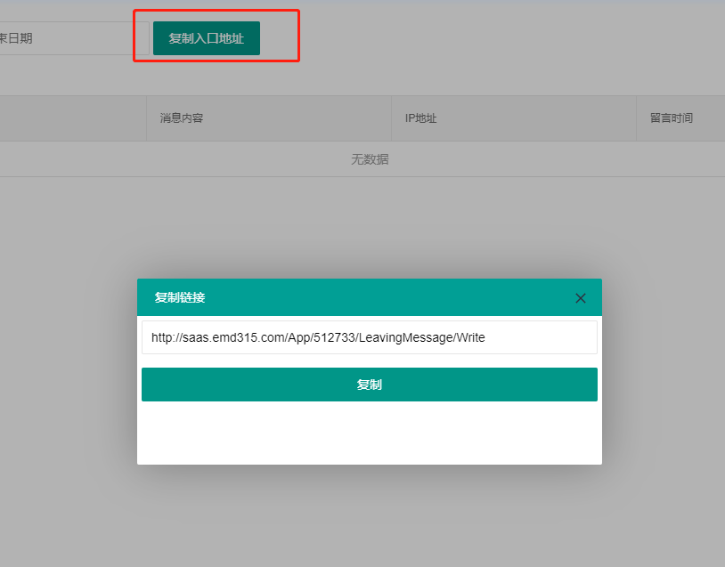 复制入口地址,发给代理,代理可以通过此地址进行留言。
